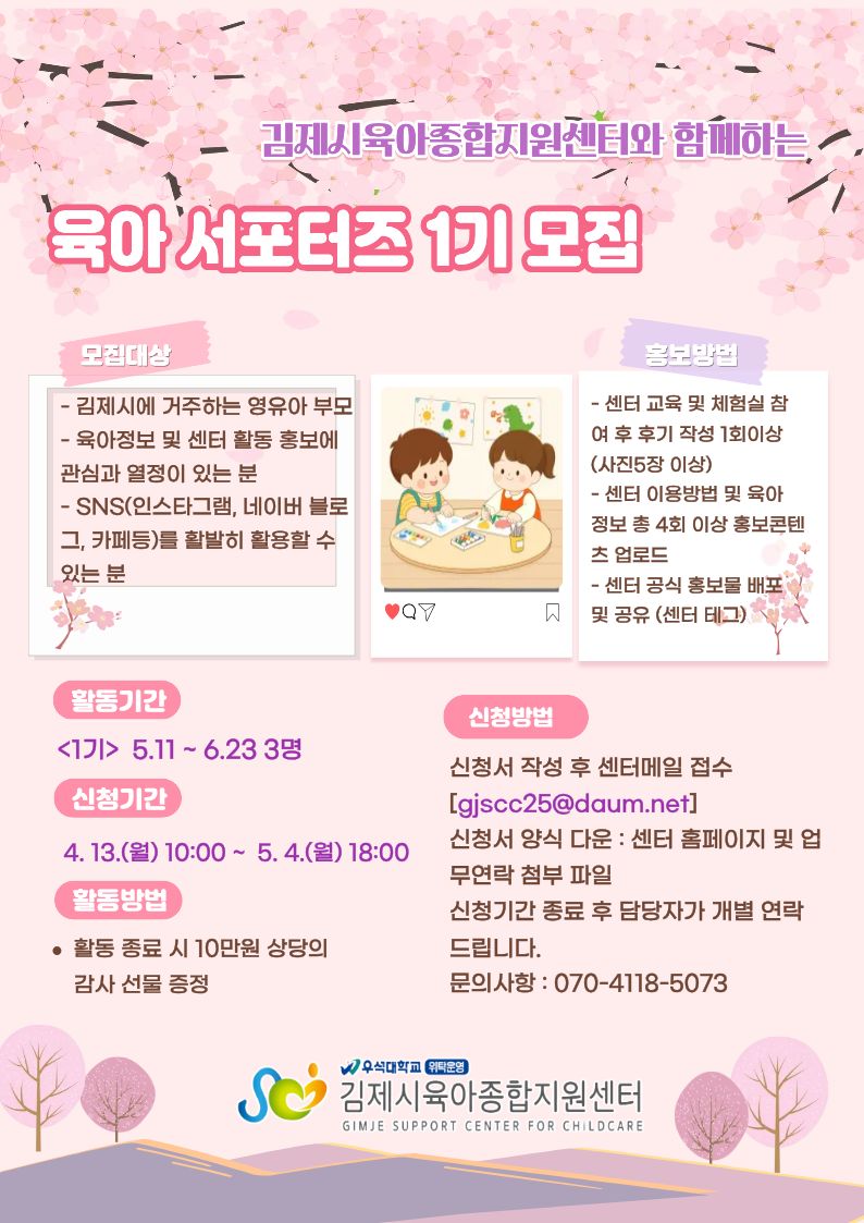 김제시육아종합지원센터 육아서포터즈 1기 모집