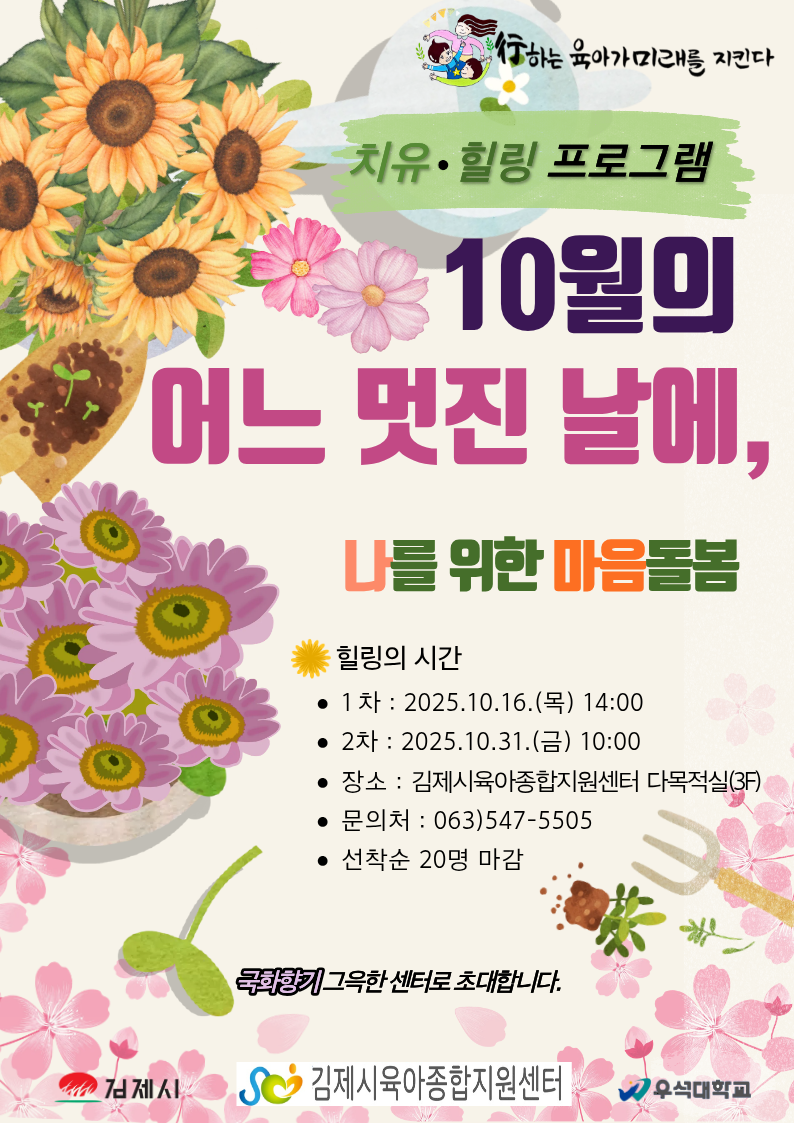김제시육아종합지원센터 10월의 어느 멋진 날에 치유, 힐링 프로그램 모집 안내